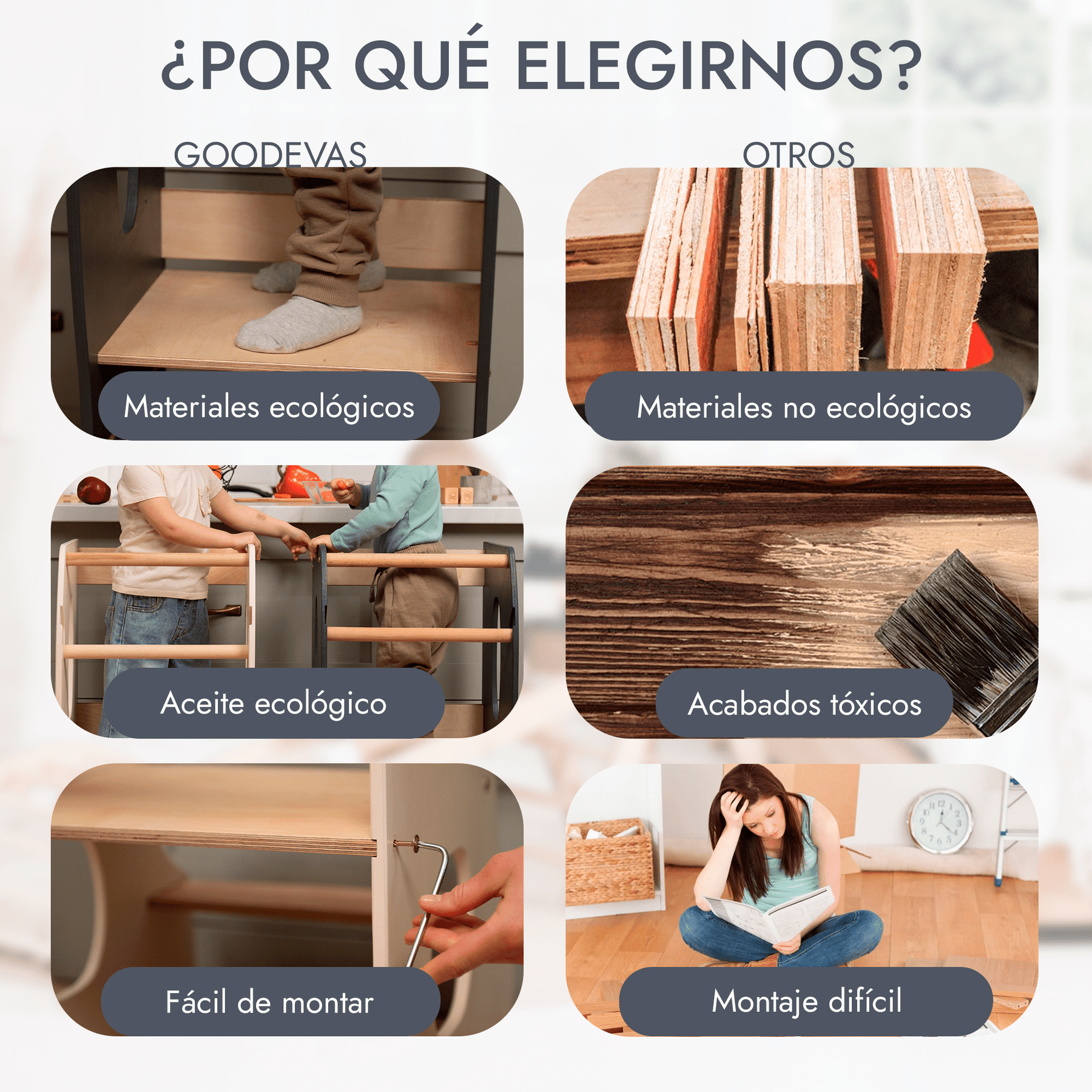 Pensada para padres ocupados y pequeños exploradores llenos de energía, nuestra torre plegable ofrece toda la practicidad que necesitas en tu día a día. Ya sea para ganar espacio o montarla en un instante, su diseño inteligente hace que guardarla y usarla sea muy fácil.