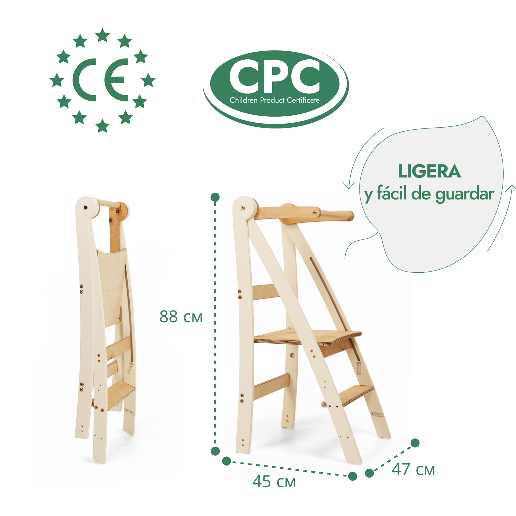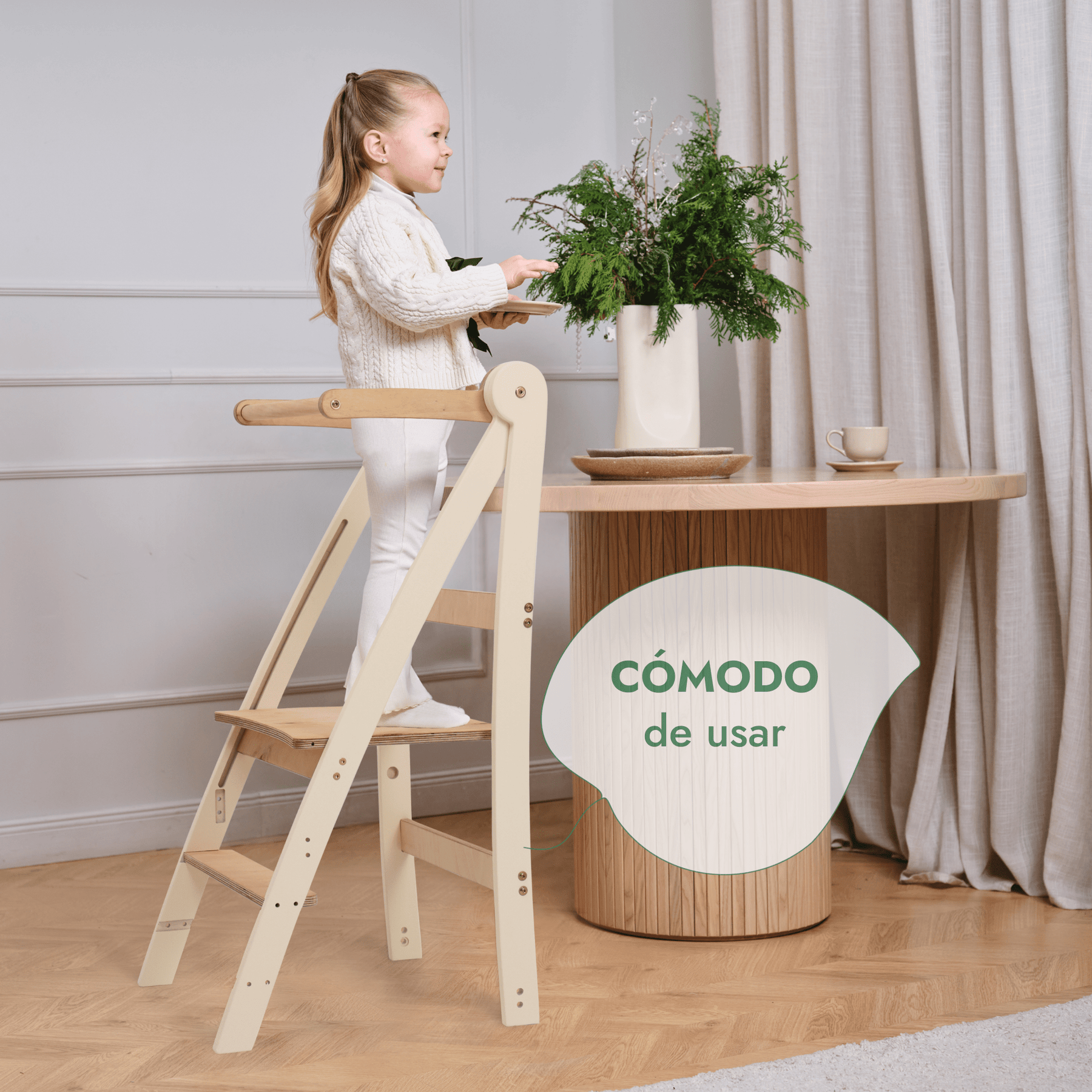 Pensada para padres ocupados y pequeños exploradores llenos de energía, nuestra torre plegable ofrece toda la practicidad que necesitas en tu día a día. Ya sea para ganar espacio o montarla en un instante, su diseño inteligente hace que guardarla y usarla sea muy fácil.